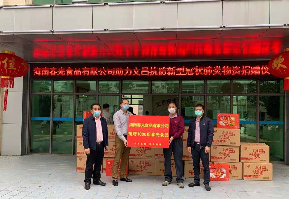 2月5日,海南春光食品向文昌市一線防疫醫(yī)務人員和集中醫(yī)學觀察點共捐贈了1000份食品,助力文昌市疫情防控工作。